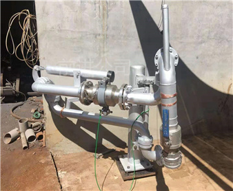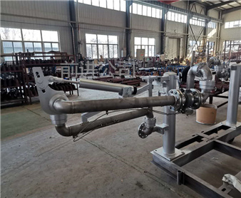 *典型的槽車底部裝卸鶴管,與槽車用快速接頭或者法蘭聯接,采用五個旋轉接頭。介質由槽車卸油口經鶴管自上而下流入管線內,采用重力作用下的自流方式就可卸車,接口高度較高時