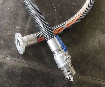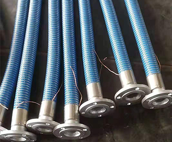 【軟管結(jié)構(gòu)】:管壁有多層POLYPROPYLENE聚合物膜及合成纖維織物加強(qiáng)層構(gòu)成;內(nèi)外兩層螺旋金屬線纏繞;導(dǎo)靜電設(shè)計(jì);特殊要求可提供尼龍內(nèi)層材料